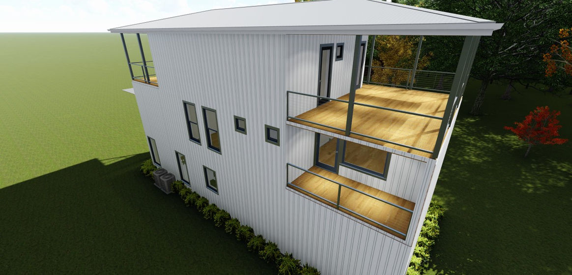 The home is shown with a stucco finish and board & batten siding. The home would be ideal with those material or horizontal lap siding, or a mix. I offer the service of customizing the exterior with the use of 3d models for a truly custom design.
